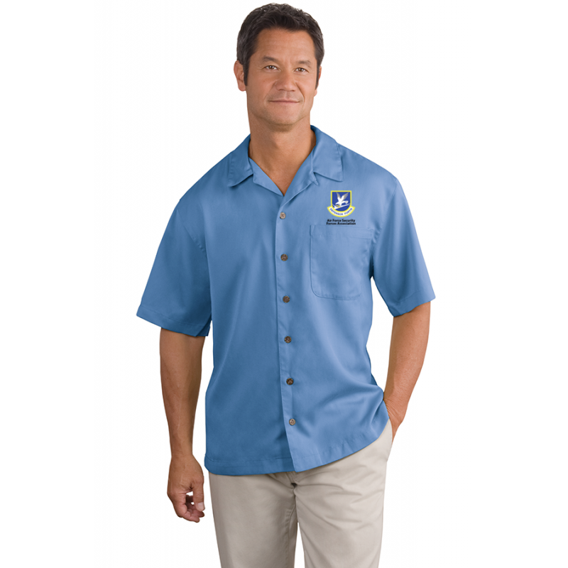 This classic camp shirt is perfect for upscale service environments. Made from no-fuss fabric, this shirt has a stain-release finish that helps keep you clean and stain-free so it keeps its great looks wear after wear.