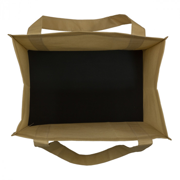 This strong 80GSM non-woven polypropylene shopping tote bag is recyclable and reusable. It features 20" long handle straps stitched the entire length of bag for reinforcement, an 8" W gusset, and a hard plastic bottom insert for extra reinforcement. Perfect for the environment! Reusable and Recyclable.